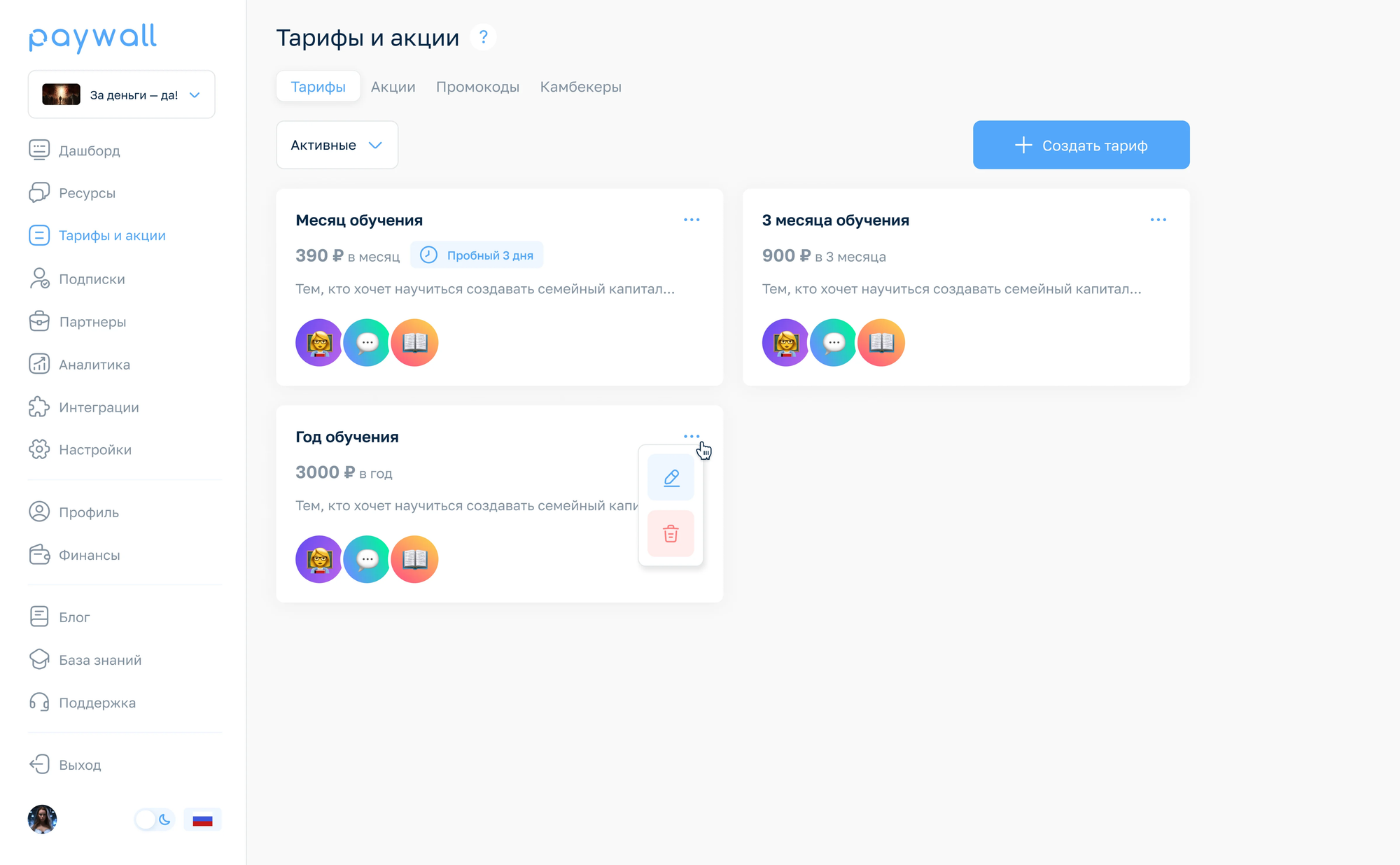Вы можете ознакомиться со всем функционалом Paywall через базу знаний по этой ссылке.