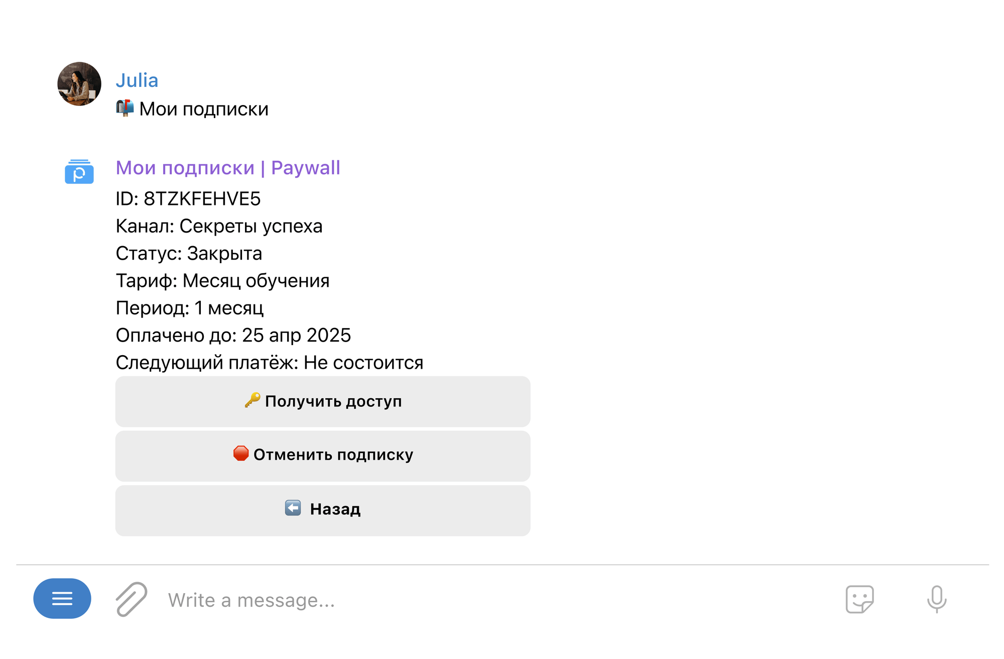 Как работает бот для приема платежей в Telegram Paywall со стороны подписчика?