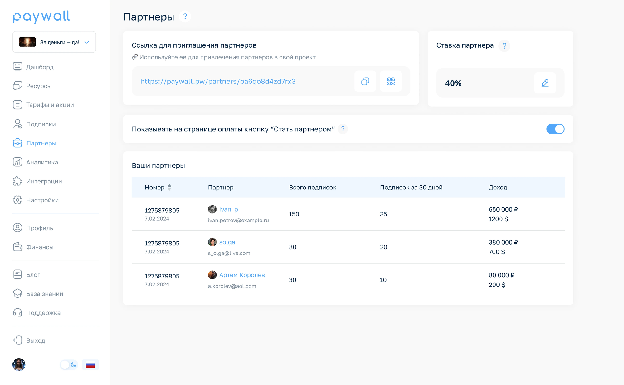 Вы можете подключать партнёров или блогеров и делиться с ними процентом от подписчиков, которых они привели. Такая партнёрская система помогает быстрее развивать проект, находить новые каналы продвижения и выстраивать долгосрочные коллаборации.