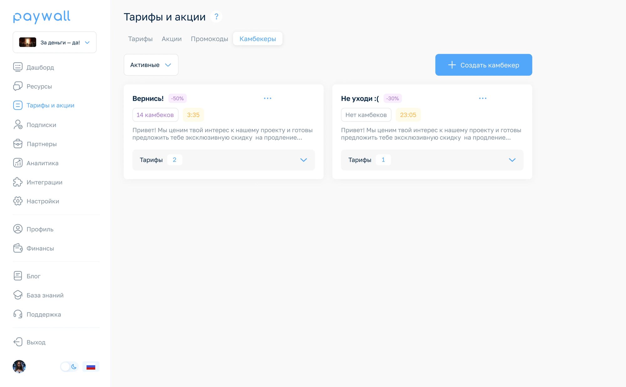 Paywall помогает удерживать подписчиков с помощью продуманных инструментов: «камбекеров» с временными скидками, бонусов за продление и напоминаний о скором окончании доступа. Эти механики мотивируют аудиторию оставаться дольше, повышают LTV и снижают отток без вашего участия.