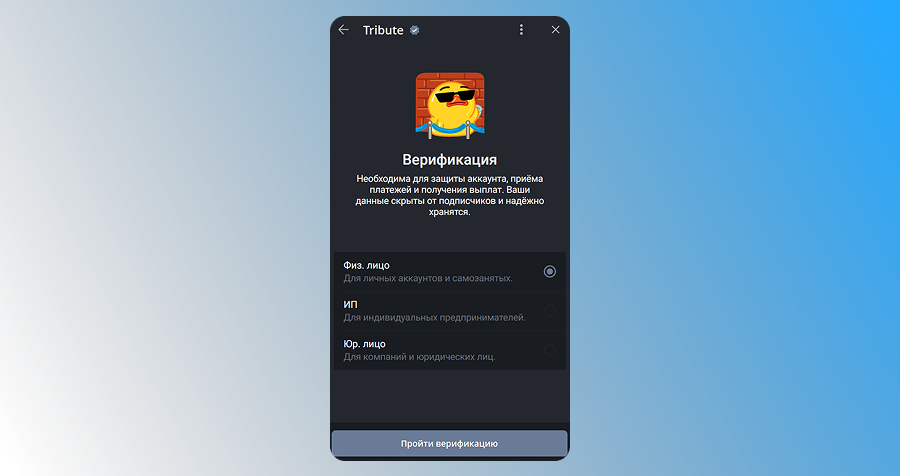 Чтобы подключить донаты, нужно связать свой Telegram-аккаунт с Tribute, указать реквизиты и активировать кнопку поддержки. После этого подписчики смогут отправлять донаты через тг прямо из канала или чата.