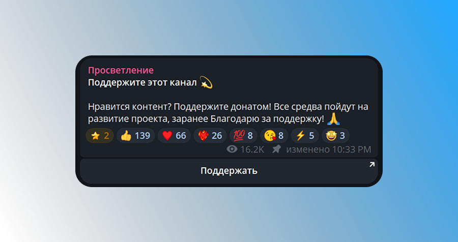Теперь вы знаете ответ на вопрос "как сделать донат в телеграм". Фактически, telegram donate продолжает работать по тому же принципу: это инструмент добровольной поддержки. Подписчик сам решает, когда и какую сумму перевести, а автор получает благодарность в виде доната в телеграме. Такой формат подходит как дополнительный способ монетизации, но не даёт стабильного дохода, так как всё зависит от активности аудитории.