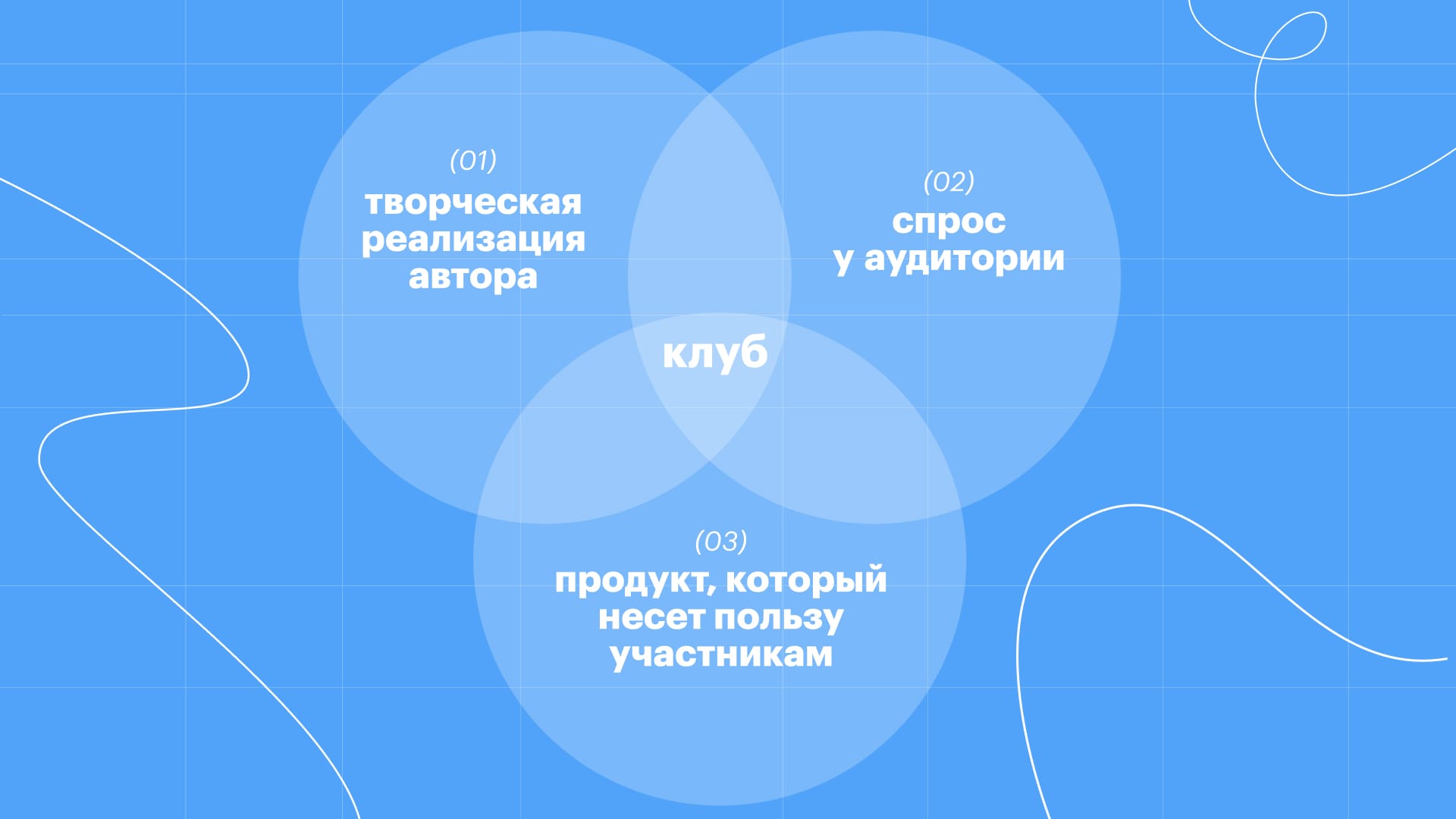 Проект по подписке — живой, динамичный продукт, который автор развивает вместе с вовлеченными подписчиками. Внутри клуба в первые месяцы автор нащупывает рабочую концепцию, в которой соединяются реализация его творческого драйва, спрос и ценность для аудитории.