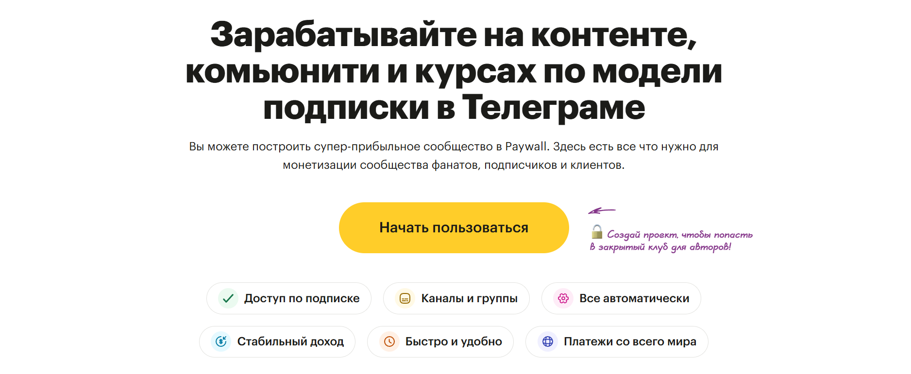 Теория — это одно, но куда интереснее посмотреть, как сервис работает в реальной жизни. На Paywall уже запущены сотни проектов: от клубов по подписке и образовательных курсов до бизнес-сообществ и авторских каналов. В отличие от универсальных систем вроде Lava Top, здесь видно, что платформа действительно заточена под авторов — подписчики легко оформляют доступ, а создатели получают стабильный доход и удобную аналитику.
