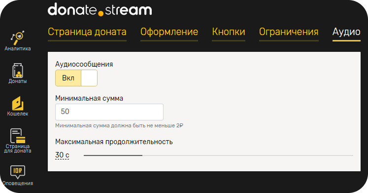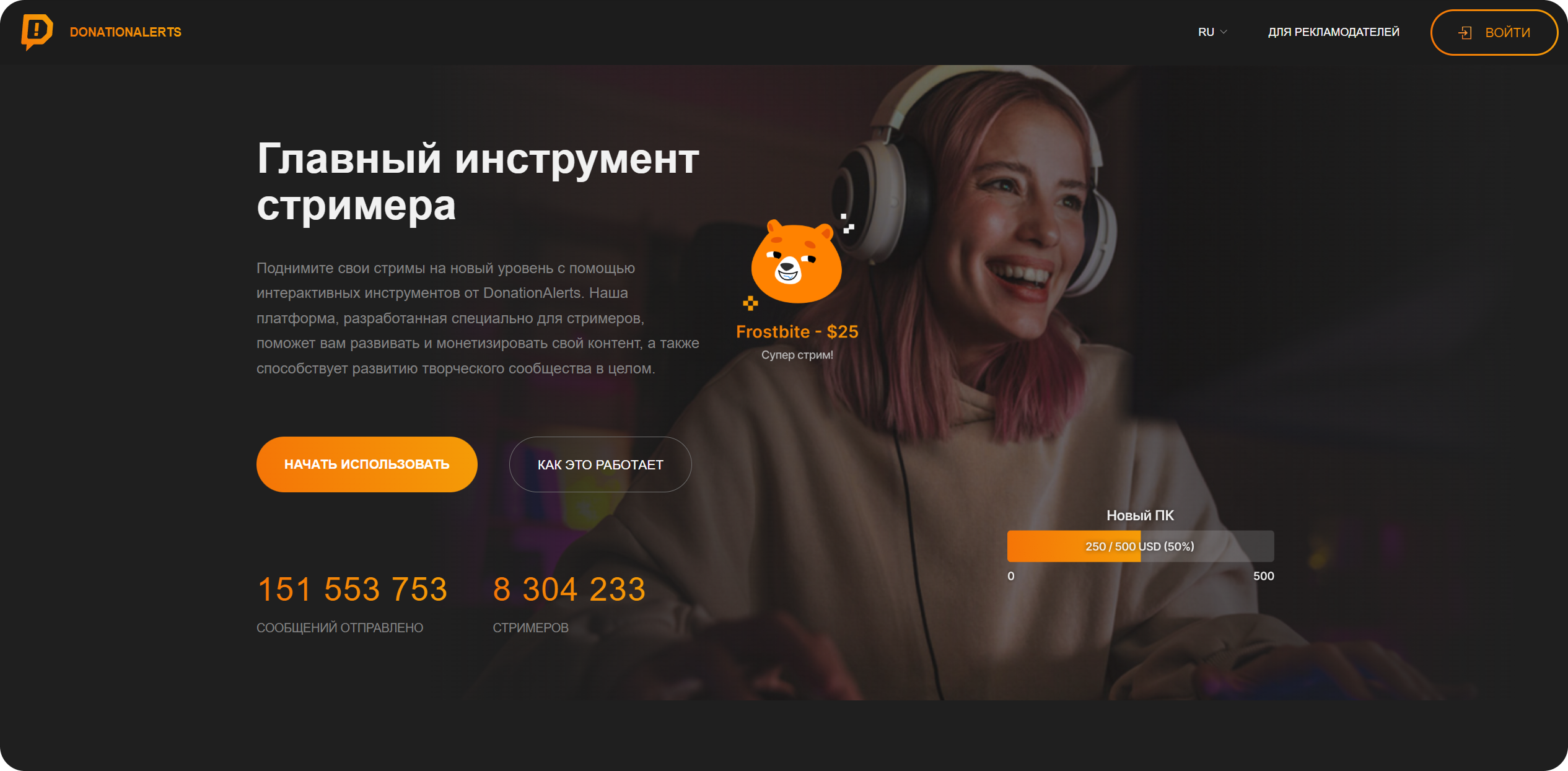 - Если вы делаете стримы/эфиры и вам нужна донат-механика с оповещениями на стриме, быстрым выводом (от 2 минут) и низким порогом вывода (50 ₽).