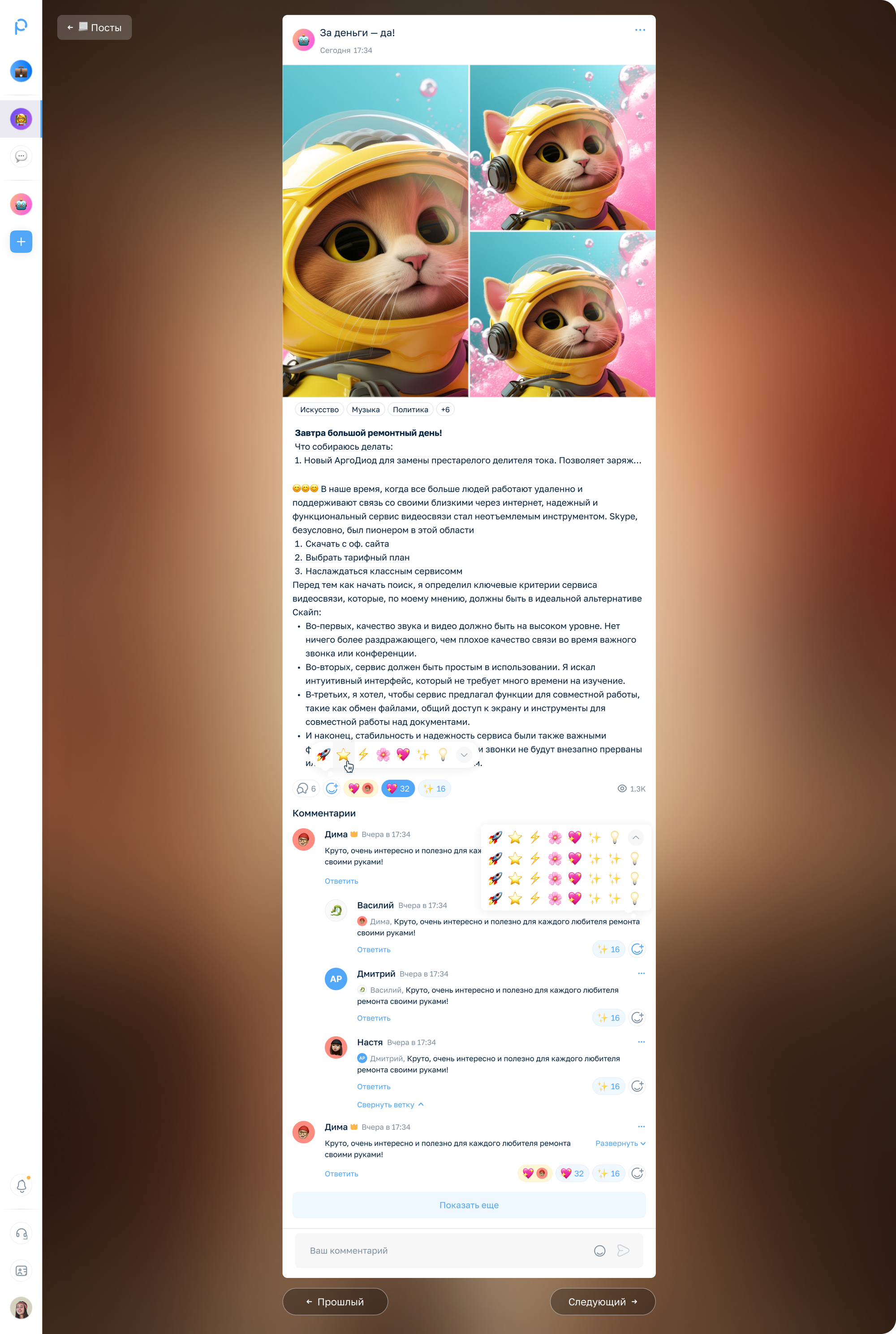 - Вовлечение. Реакции, комментарии, обсуждения под постами — это не “косметика”. Это то, что удерживает подписку, когда контент выходит регулярно.