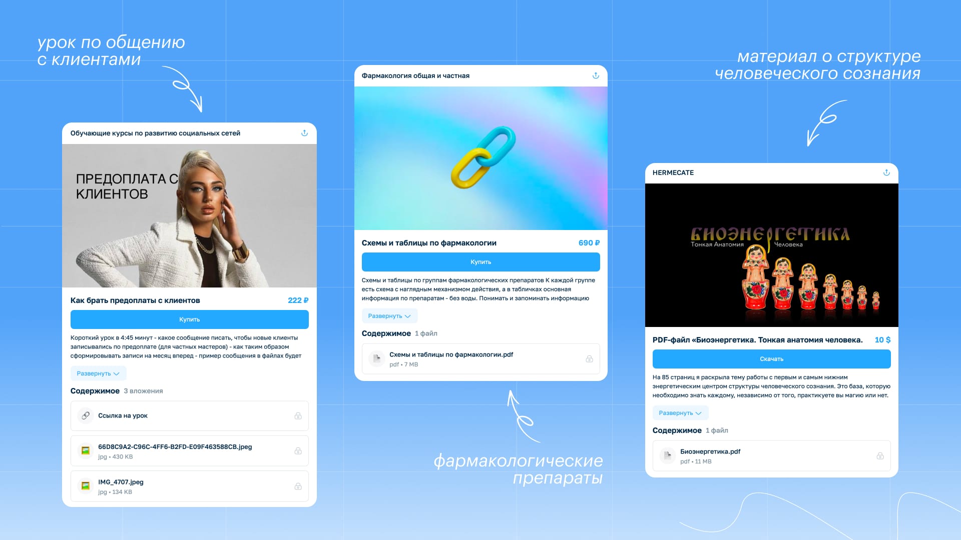 Вот примеры онлайн-продуктов, которые уже продаются через Paywall. Подчеркиваем, это не набор рандомных товаров с витрины, а продукты с реальными продажами: